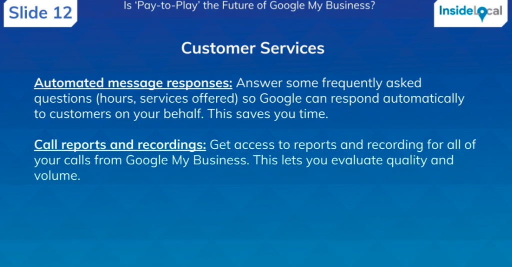 Ben said, “Automating messaging responses is something Facebook and Google already have, so that’s great. Call reports and recordings would be fantastic to integrate into Google My Business. We have a bit of that through CallJoy for $39 per month. It’s still in a beta phase, but they’ve already got it.”